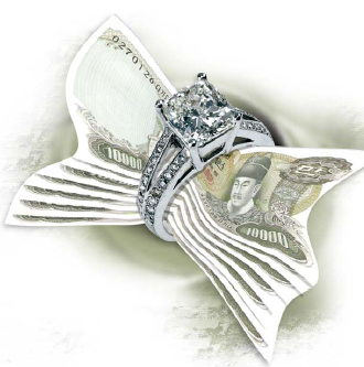 혼수가 증여의 수단으로 변질된 것은 부유층에선 이미 오래된 일이다. 수억원짜리 미술품이나 수천만원짜리 스포츠센터, 골프 회원권을 들려 보내는 것은 돈 좀 있다 하는 부류에선 자랑거리도 못 된다. 다이아몬드로 뒤덮인 반지와 목걸이는 하고 다니라고 주는 게 아니다. 재산을 한몫 떼어주는 방법의 하나로 이용된다.