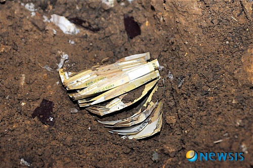 【김제=뉴시스】유진휘 유영수 기자 = 인터넷 불법도박자금 은닉 사건을 수사하고 있는 경찰이 40여억원의 돈 뭉치를 추가 발견했다.
