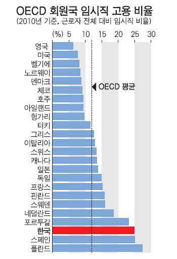 IMF는 한국이 양극화와 인구 고령화 위험에서 벗어나려면 경제협력개발기구(OECD)에서 세 번째로 낮은 여성의 경제활동참가율(62%)을 높여야 하는데, 비정규직 차별이 이를 가로 막고 있다고 진단했다. 실제 여성 근로자의 비정규직 비율은 42%로, 남성(28%)보다 배 가까이 높은 상황이다. IMF는 "비정규직 차별을 없애고 공공보육과 직업교육에 대한 재정 지출을 확대하면 여성의 경제활동참가율이 높아져, 결국 경제 활력을 높이게 될 것"이라며 정부에 정책 재검토를 권고했다.