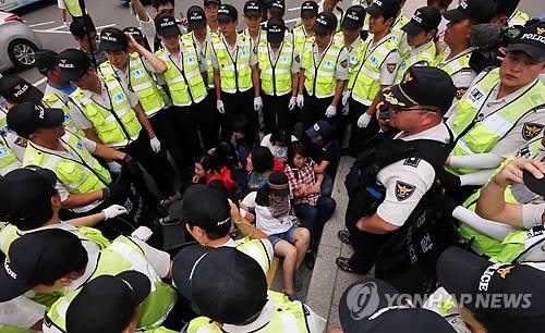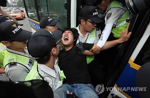 한대련 소속 대학생 29명은 기자회견을 마치고 광화문 교보문고 앞 도로에 앉아 기습시위를 벌이다 경찰에 연행됐다. 경찰은 대학생들을 은평서, 종암서, 성북서 등 경찰서 5곳으로 보내 집회 및 시위에 관한 법률과 도로교통법 위반 혐의 등으로 조사하고 있다.