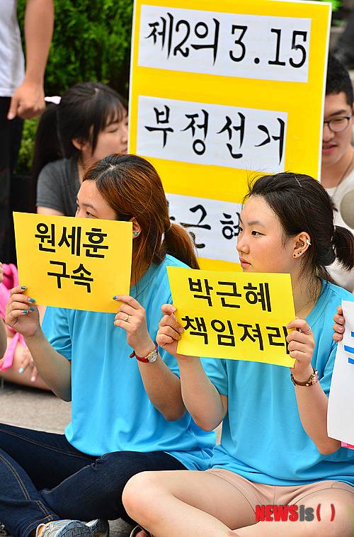 【서울=뉴시스】조종원 기자 = 22일 오후 서울 중구 청계광장 인근에서 청년이그나이트를 비롯한 진보단체 회원들과 시민들이 '모여라 국정원 선거개입 규탄 촛불대회'를 갖고 있다. 2013.06.22.