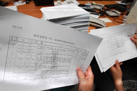 검찰은 국회 몇몇 의원실의 요청을 받은 범죄일람표를 지난주 프린트 해서 한장한장 '국회제출용'이라는 도장을 찍은 문서 형태로 제출했다. < 오마이뉴스 > 는 국회를 통해 문서를 입수했고, 하나하나 모두 스캔을 떴다. < 오마이뉴스 > 가 이를 전체 공개하기로 한 이유는 ▲사안의 중대성과 국민의 알권리 ▲개별 게시글 하나하나는 인터넷에 이미 다 올려져 있는 공개 정보라는 점 ▲게시자의 이름이나 아이디 등 개인정보가 없다는 점 때문이다.