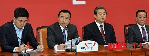 새누리당 김무성 대표는 이날 오후 여의도 당사에서 열린 보수혁신위원회의 회의를 방문하기 직전 기자들과 만나 "워낙 예민한 문제이기 때문에 저 혼자 즉답을 하기 어렵다"며 밝혔다.