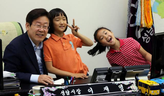 "퀴즈 하나 내줄게. 이 나라 주인이 누구야?" 22일 오전 경기도 성남시 중원구 성남시청 이 시장의 집무실은 성남시의 유치원·초등학교에 다니는 아이들의 견학 장소로 개방되고 있었다. 아이들이 우르르 몰려 들어왔다. 이 시장은 업무를 중단하고 아이들과 대화를 나누었다.