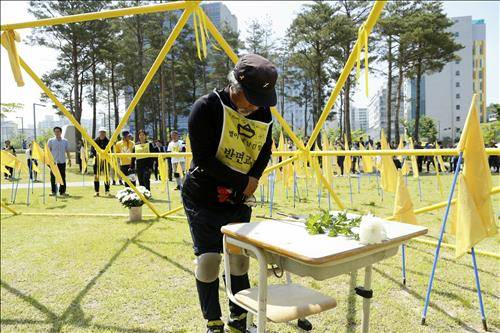 순례단은 국민 모금으로 제작 중인 나룻배 모형의 조형물이 완성되면 다음달 7일 오전 성남시청 광장에서 순례를 다시 시작해 13일 광화문에 도착할 예정이다.
