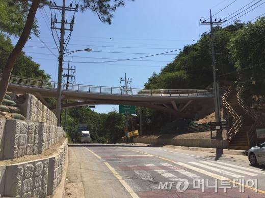 경기 성남시가 중원구 갈현동 이배재고개 정상에 등산육교를 설치·완공 했다.