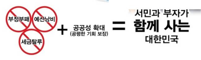 3+1 원칙은 ▷부정부패 안 하고 ▷예산 낭비 안 하고 ▷세금 탈루(체납) 막아서 ▷(그 돈으로) 공공성을 확대하면 서민과 부자가 함께 잘사는 대한민국이 만들어진다는 논리이다.