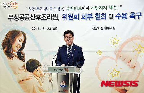앞서 보건복지부는 지난 19일 성남시가 지난 3월 협의요청한 무상 산후조리 지원 제도에 대해 불수용 입장과 함께 국무총리실 산하 사회보장위원회에 회부할 예정이라고 시에 통보했다. 이에 따라 7월 예정된 성남시의 공공산후조리원 운영을 비롯해 산후조리비 지원사업도 차질을 빚게 됐다.