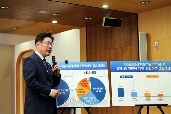 이 시장은 "성남시가 한 무상공공산후조리원에 대한 여론조사에서 찬성여론이 압도적으로 나왔다"면서 "국민 대다수가 찬성하고 칭찬하는 사업을 정부가 하지마라고 하는 건 권한남용 행위"라고 비난했다.