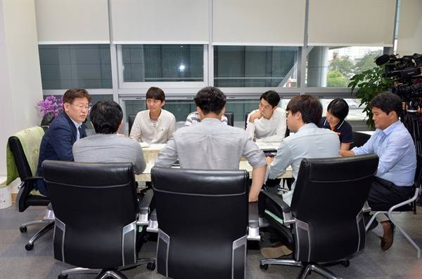 | ▲ 이재명 성남시장과 가천한의대 학생들이 대화를 나누고 있다. |