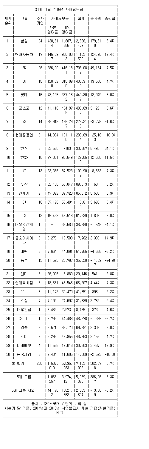5대그룹 유보금 증가액이 30대그룹 전체 증가액보다 많아