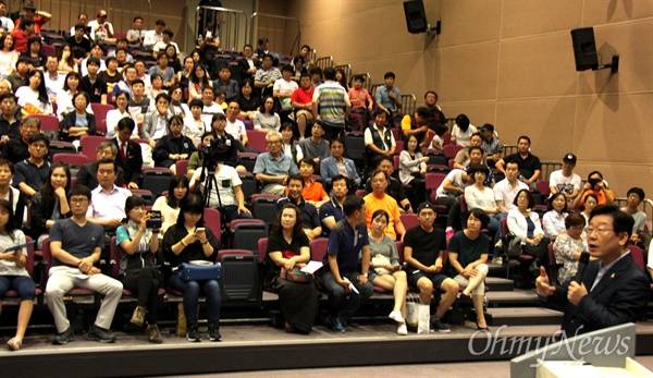 이재명 시장은 해운대시민포럼, 노무현재단 부산지역위원회, 해운대 바보주막 초청으로 24일 저녁 부산디자인센터에서 '꼬리 잡아 몸통 흔들다'는 제목으로 강연했다. 강연은 350석을 가득 메웠고, 2시간 가량 진행되었다.