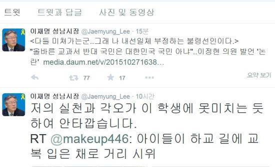이재명 성남시장은 28일 자신의 트위터를 통해 “다들 미쳐가는군”이라며 “그래 나 내선일체 부정하는 불령선인이다”라고 적었다.