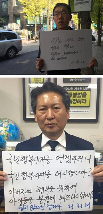 김제동의 1인 시위 사진을 본 정청래 의원과 이재명 성남시장이 김제동을 응원했다. 정 의원은 자신의 트위터 계정을 통해 "김제동을 응원합니다. 김제동씨 미안하고 감사합니다"라는 글과 함께 1인 피켓을 든 인증샷을 올렸다. 아울러 이 시장도 트위터에 "김제동을 응원합니다. 힘내세요!"라는 글을 남겼다.