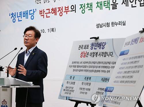 청년배당 정책은 시에 주민등록을 두고 3년 이상 거주해온 만 19~24세 청년에게 성남시가 분기당 25만원씩 연간 100만원을 '청년배당금'으로 지급하는 제도다. 관련 조례가 시의회를 통과하고 복지부가 이 정책을 수용하면 시는 시행 첫해인 내년에 우선 24세인 1만1천300명을 대상으로 배당금을 지급할 계획이다.