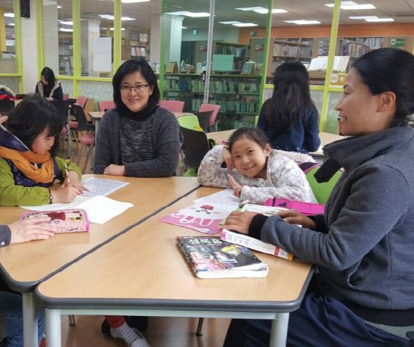 | 경기 성남시 분당구 성남장안초등학교 도서관 내 북카페에서 학부모들이 자녀와 함께 책을 읽고 있다. |