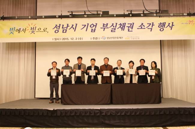 성남시는 지난 2일 성남산업진흥재단(대표 장병화)이 주관한 ‘2015 성남시 중소기업인 워크숍’에서 주빌리은행과 공동으로 ‘빚에서 빛으로, 기업 부실채권 소각 행사’를 열어 원금 235억원(이자포함 500억원 상당) 규모의 기업 부실채권을 소각했다고 3일 밝혔다.
