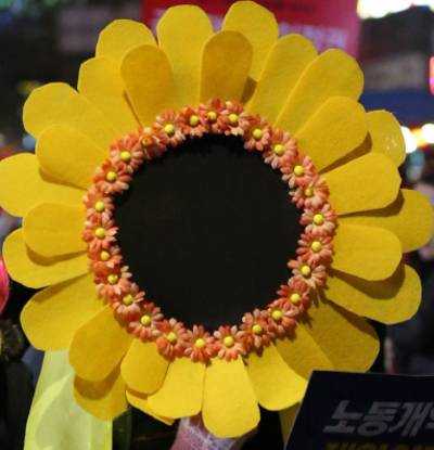 행진하는 시민들 옆 길가에서는 자기만의 생각을 적는 손팻말을 만들어보는 부스가 차려지기도 했다. 미처 손팻말을 준비해 오지 못한 시민들은 이곳에서 ‘한국사 자격증 1급 반납한다’ ‘응답하라 병신(丙申)년 되기 전에’ 같은 기발한 문구들을 적어 들었다.