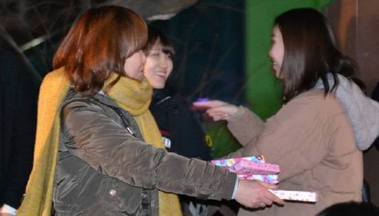 | ▲ 제자들에게 크리스마스 선물을 나눠주는 기유정 교사 |
