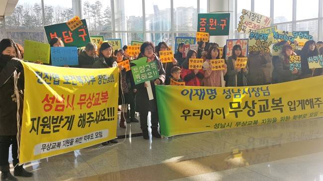 이들 학부모들은 “복지부가 성남시의 무상교복을 불수용하면서 내년 1월 중학교 신입생들의 무상교복 지원이 무산될 위기에 처했다”고 강조했다.