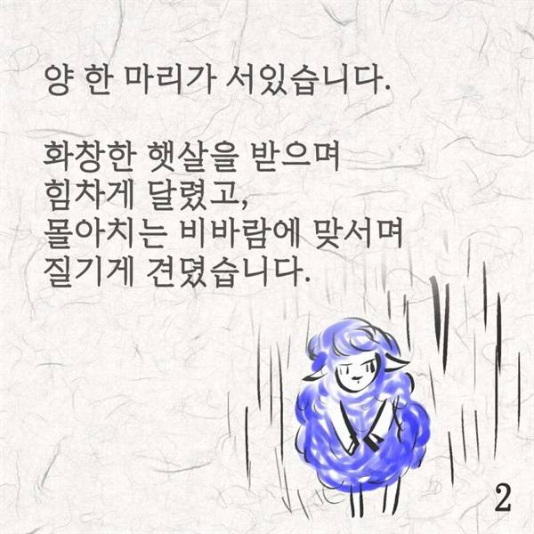 송년사에 등장하는 기울어진 들판에 서 있는 양은 앞으로 나아갈 수 없는 상황입니다. '아래'로 떨어질 수 있기 때문이죠. 이런 현실에서 희망을 품을 수 없는 양에게 모두 "더 노력해야 한다"고 말합니다. 하지만 양이 노력해서 현실을 바꿀 수 없습니다.