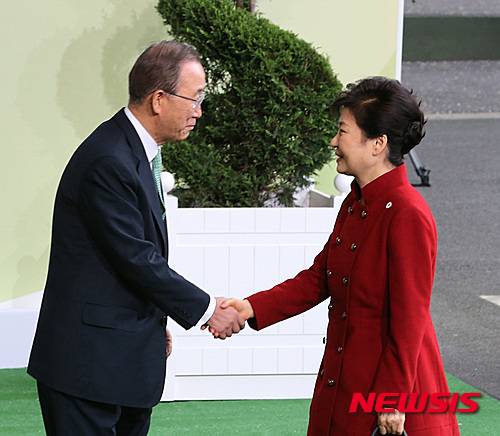 반 총장은 이어 "올해는 이 두 가지의 이행을 위한 기틀을 마련코자 하는 바, 한국이 경제사회이사회 의장국도 맡고 있는 점 등을 감안, 금년에도 이와 관련한 유엔의 활동에 대해 박 대통령 및 한국 정부가 계속지원해 줄 것을 기대한다"고 말했다.