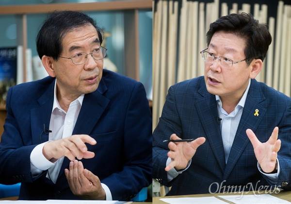 | ▲ 박원순 서울시장과 이재명 성남시장이 지난해 오마이뉴스 팟캐스트에 출연해 토론하고 있다. |