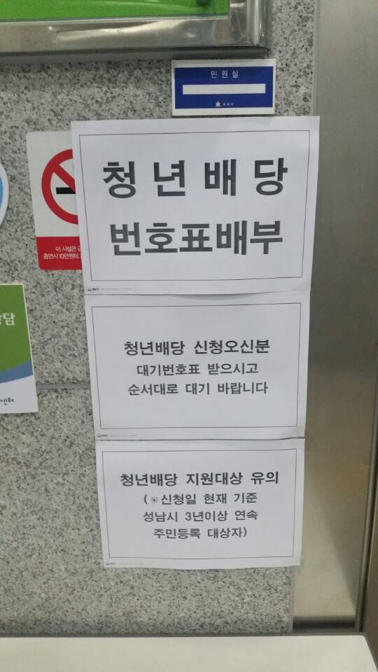 성남 각 동 주민자치센터에는 청년들이 한꺼번에 몰려 북새통을 이뤘다. 일부 주민자치센터에는 ‘청년배당 대기표’까지 갖다놓고 대기 번호표를 나눠 주었다.