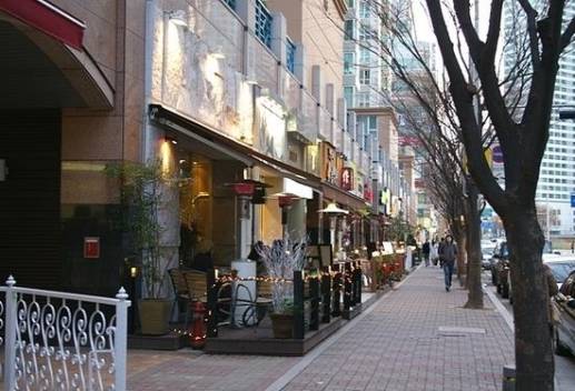 ‘테라스 거리’라고도 불린다. 커피 향과 은은한 음악이 흐르며, 각각의 상가마다 독특한 건물 모양과 화려한 조명이 어우러져 이국적인 풍경을 만들어내고 있다. 아름답고 멋진 테라스를 보면 마치 외국의 명물거리에 온 듯한 착각이 든다. 주상복합건물인 파라곤과 상떼뷰리젠시 두 건물 사이에 있는 4차선 도로 500여m 길가에 50여개의 카페, 레스토랑 등이 늘어서 있다.