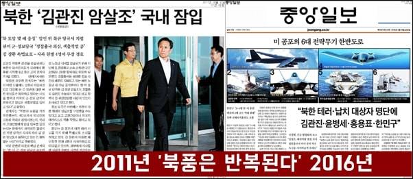 | ▲ 2011년 김관진 암살조 국내잠입을 보도한 중앙일보 기사와, 2016년 북한 테러,납치 대상자 명단을 보도한 중앙일보 기사. |