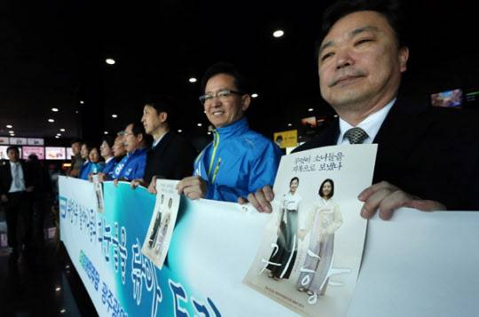 또 더민주 유기홍 의원은 포털 사이트 다음 아고라에서 상영관을 늘리자는 서명운동을 18일부터 시작했다. 일본대사관 앞 소녀상에서 1인 시위도 했다. 지난 18일에 확보한 상영관은 57개였지만 정치권의 영향인지 이날 현재 상영관은 크게 늘어난 300여개로 집계됐다