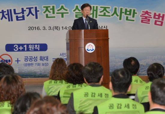 경기도 성남시는 3일 오후 시청 한누리에서 ‘2016 체납자 전수실태조사반 출범식’을 가졌다.