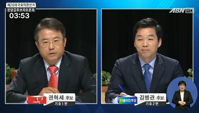 | ▲ 지난 5일 중앙선관위 주관 토론회에 참석한 권혁세 새누리당 후보(왼쪽)와 김병관 더민주 후보. |