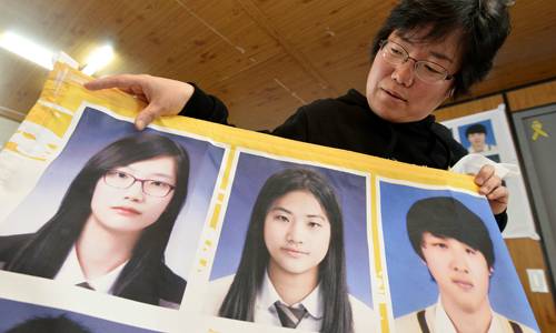 돌아오지 못한 이들 오는 16일로 304명의 목숨을 앗아간 세월호 참사 2주기를 맞는다. 자녀, 부모 등을 잃은 유가족들의 상처는 여전히 아물지 않고 있다. 특히 아직껏 시신을 찾지 못한 가족들은 악몽 같은 나날을 이어가고 있다. 왼쪽부터 미수습된 조은화(17·단원고 학생)·허다윤(〃)양, 박영인(17·〃)·남현철(16·〃)군, 양승진(57·단원고 교사)·고창석(40·〃)씨, 권재근(52)씨와 아들 혁규(6)군, 이영숙(51·여)씨.