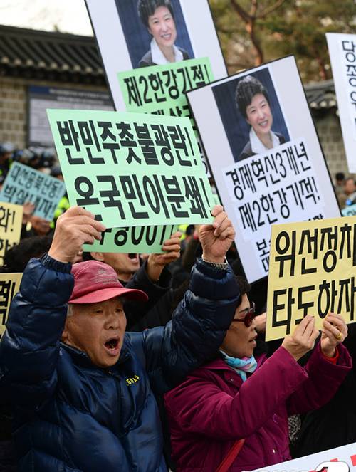 어버이연합 핵심 인사 ㄱ씨는 4월18일 오후 서울의 한 사무실에서 기자를 만나 “청와대가 어버이연합을 못마땅하게 여겨서 공격을 하는 것 같다”며 “집회를 열어달라는 요구를 안 받아줘서 그러는 것이다”고 밝혔다. 이 인사에 따르면, 올해 초 한일 위안부 합의안 체결과 관련해 청와대측에서 지지 집회를 지시했는데 어버이연합에서 이를 거부했다. 그는 “집회를 했다가는 역풍이 일 것이라고 여겼다”며 “애국보수단체의 역할과도 맞지 않는다고 판단했다”고 설명했다.