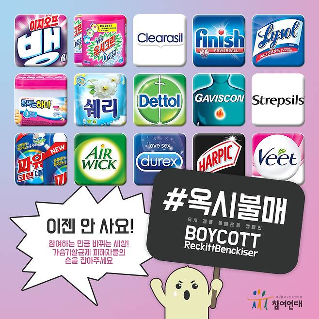 최근에야 이런 일들이 뒤늦게 각종 매체를 통해 알려지기 시작했습니다. 옥시의 행태는 국민들의 공분을 샀고 옥시 전 제품에 대한 불매 운동의 불씨가 지펴지기 시작했습니다.