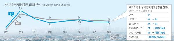 수출감소는 세계 교역 둔화라는 구조적 요인이 크다. 2000년대 중반까지만해도 세계교역(물량 기준) 증가율은 연 9%에 달했으나 지금은 3% 안팎에 그친다. 한국 수출의 4분의 1 이상을 차지하는 중국 시장은 고속성장 시대를 마감하고 연 6%대의 중속성장에 접어들었고, 기존 교역·투자 중심에서 내수 중심으로 성장 전략을 바꾸면서 수입을 줄이고 있다. 특히 물량과 가격 경쟁력으로 한국을 추격해온 중국이 이제는 기술력으로도 거의 따라잡으면서 세계 수출 시장에서 한국을 위협하고 있다.