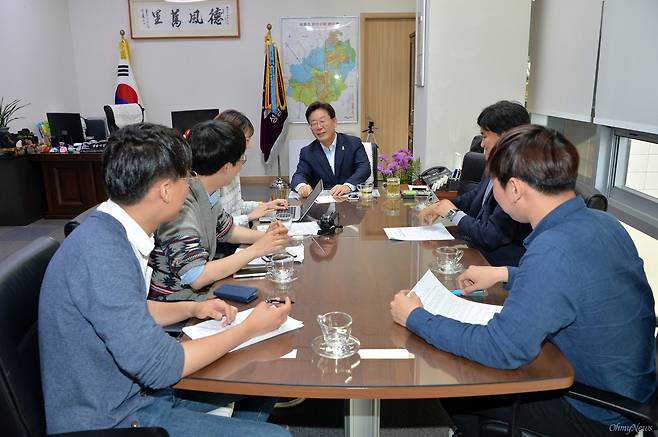 지난 11일 오후, <오마이뉴스> 상근기자 두 명과 청년 시민기자 세 명(권순민, 이찬우, 유종헌)이 이재명 성남시장을 마주했다. 지난 3월, 이 시장이 SNS에 올린 '한심한 대학생' 발언이 발단이었다.