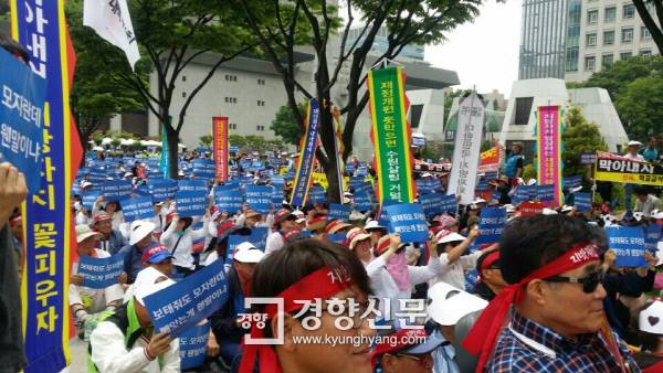 [경향신문] 성남·수원·화성 등 경기지역 지방교부세 불교부 지자체 시민들은 23일 정부의 지방재정개혁에 반발하는 항의 집회를 서울에서 개최했다. 이날 오후 1시 정부 서울청사 인근 세종문화회관앞 잔디밭에서 열린 ‘지방재정 개악안 철회촉구 경기도민 결의대회’에 참가한 경기지역 시민 3000여명은 정부의 지방재정개혁 철회를 촉구했다.