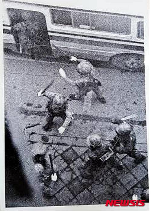 【광주=뉴시스】배동민 기자 = 5·18기념재단은 23일 36주년 5·18민주화운동 기념행사 기간 기증 받은 자료를 오는 26일부터 5·18 해외아카이브전 '당신은 아는가? 5·18 그 위대한 연대' 전시회에서 추가 공개한다고 밝혔다. 사진은 이번 전시회를 통해 첫 공개될 기증 자료로, 계엄군이 시민을 끌어내기 위해 버스에 올라타고 있고 한쪽에서는 폭행이 이뤄지고 있는 모습이 담겨 있다. 2016.05.23. (사진=5·18기념재단 제공)