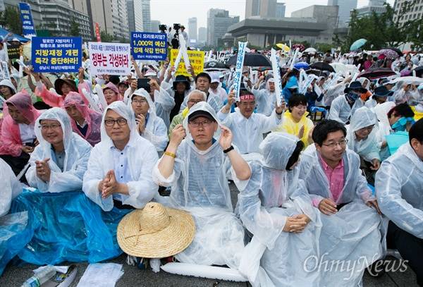 수원·성남·화성·용인·고양·과천 등 경기도 6개 시 주민대책기구는 이날 오후 광화문광장에서 '지방재정 개악 저지, 지방자치 수호 시민문화제'를 열고 "지방재정 제도 개편 시도를 즉각 중단하고, 지방재정을 확충할 근본 대책을 마련하라"라고 정부에 요구했다.