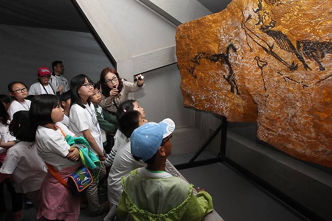 | ▲ 프랑스 라스코 동굴벽화 국제순회 광명동굴전을 찾은 도서, 벽지 청소녀들 |