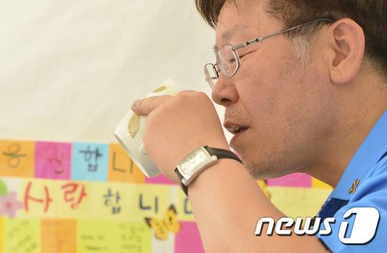 (서울=뉴스1) 신웅수 기자 = 이재명 성남시장이 13일 오후 서울 광화문광장 단식농성장에서 지방재정개혁안에 반대하며 7일째 단식농성을 이이가고 있다.