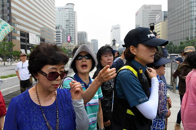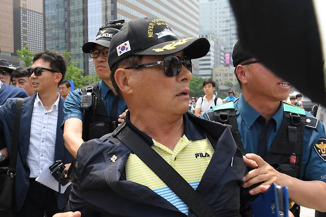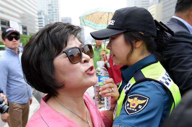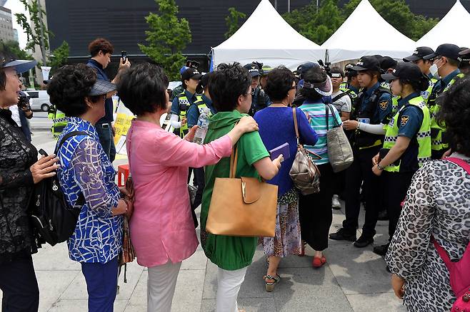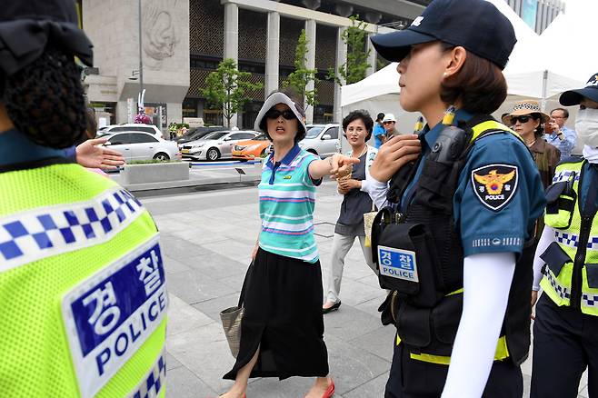경찰력이 투입되어 양측을 갈라놓으면서 몸싸움은 끝났지만 보수단체 회원들은 분이 풀리지 않았는지 고성을 내뱉었다.