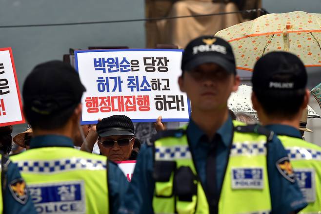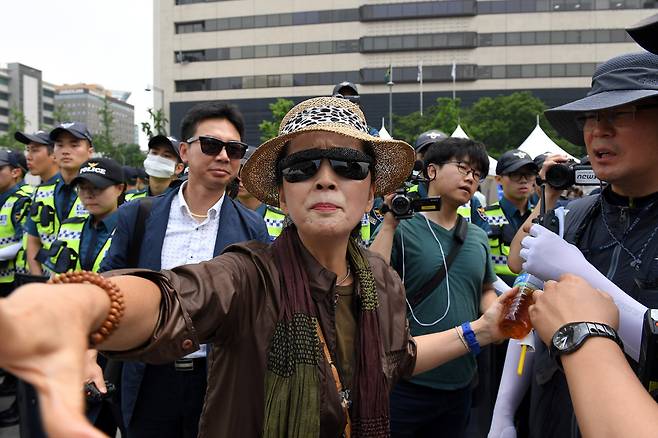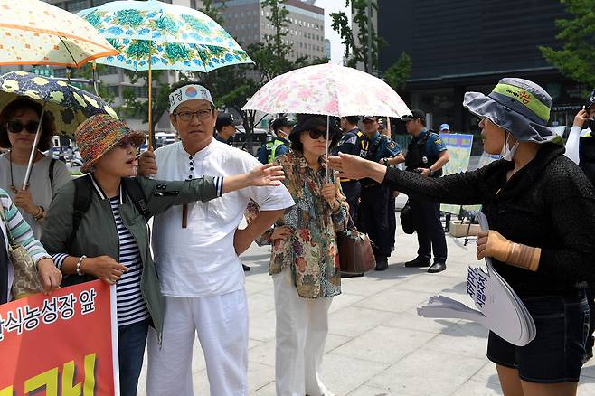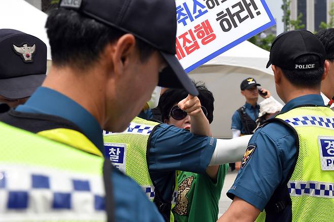 기자회견을 끝마친 이들은 농성장 진입을 시도하다 경찰에 제지됐다. 일부는 집시법 위반이라는 경찰의 경고까지 받자 경찰에 "불법 농성장이나 철거하라"며 항의를 하기도 했다.