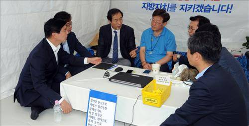 이에 우 원내대표는 "당이 지방재원 확충에 대한 국회 지방재정특위를 구성해 근본적인 지방재정 불균형 해소를 위해 노력할 것을 약속한다"며 단식농성 중단을 호소했다고 이들 단체장은 전했다.