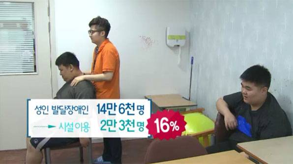 특수학교를 졸업한 발달장애인들은 갈 곳이 없습니다. 10명 중 1, 2명 정도만 대학에 진학하거나 취업합니다. 낮 시간 성인 발달장애인을 보호하는 시설이 있긴 합니다. 전체 성인 발달장애인 14만 6천여 명 가운데 16% 정도인 2만 3천여 명만 이 시설을 이용합니다.