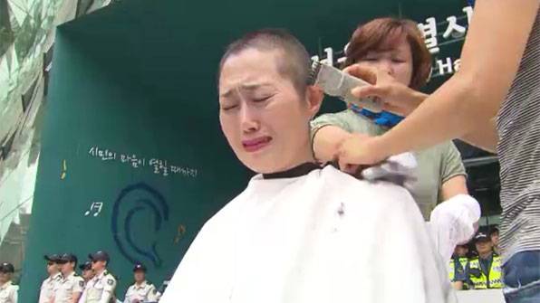 서울시청 앞 광장이 눈물바다로 변했습니다. 발달 장애인이 부모들의 집회가 열리고, 두 분의 어머니가 차가운 이발기에 머리를 맡겼습니다. 머리를 깎는, 깎이는, 그리고 그 모습을 지켜보는 이들 모두 흐느껴 울었습니다.
