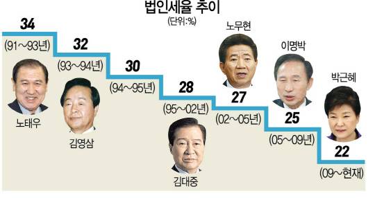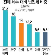 물론 반론도 나온다. 전성인 홍익대 교수는 “이명박 정부 때 법인세율을 낮추면서 기업이 열심히 활동해 근로자에게 부를 분배하는 ‘부의 낙수 효과’를 주장했지만 사내유보금만 늘어나고 빈부격차는 더 커졌다”며 “법인세는 올려야 한다”고 주장했다. 그는 “시장 자율로 안 되니 정부가 기업으로부터 세금을 더 거둬 소득재분배에 나서야 한다”고 덧붙였다. 김유찬 홍익대 세무대학원 교수도 “이명박 정부 때 법인세를 낮추면 투자가 늘고 외국 자본이 더 들어온다고 했지만 전혀 효과가 없었다”고 비판했다.