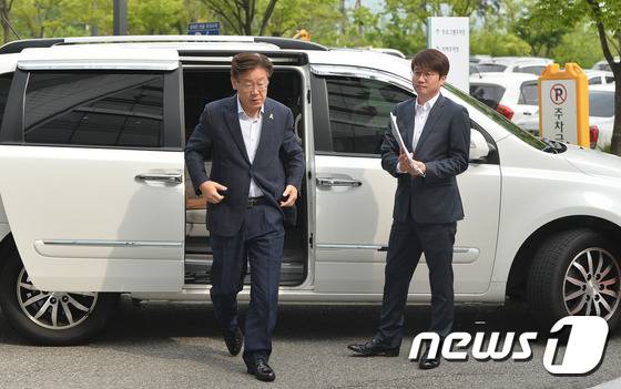 (성남=뉴스1) 이재명 기자 = 정부가 추진하는 지방재정개편에 반대해 11일 동안 단식농성을 하다 중단하고 건강 회복을 위해 입원 치료했던 이재명 성남시장이 27일 오전 경기도 성남시 중원구 성남시청에 도착해 시장실로 발걸음을 옮기고 있다. 이재명 시장은 단식 농성으로 자리를 비운지 20일만에 출근했다. 2016.6.27/뉴스1